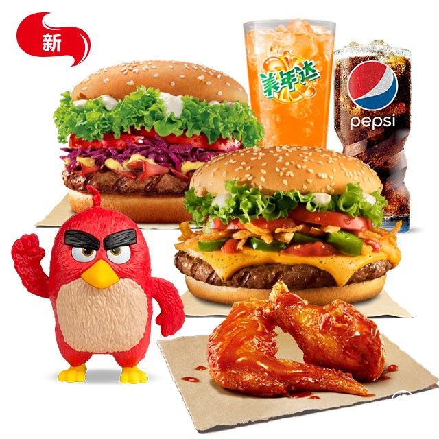先来一起看看"愤怒来袭"双人套餐吧!包含了重磅烟熏皇堡(牛)、愤怒的皇堡(辣)、嘬嘬淋酱鸡翅(鬼椒咖喱酱)、百事可乐(中)、美年达(中)5种美食,吃喝搭配,量多味足。原价92元的套餐,现价只需69元,还赠送1个愤怒小鸟玩具,每天每套限量20份!立省23元的优惠力度,喜爱汉堡的吃货们快行动起来吧!