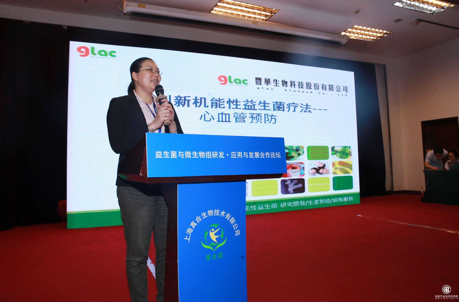 来自宝岛台湾的益生菌研发专家谢佩珊博士是“真合舒之清复合益生菌粉”的主要研发人员,会上她专门就创新机能性益生菌疗法用于预防心血管疾病的机制发表学术演讲。并介绍说,真合舒之清复合益生菌粉采用干酪乳杆菌、长双歧杆菌CP-9、短双歧杆菌bv-77、嗜酸乳杆菌F-I独家专利菌株组合,并添加菊粉、水苏糖、纳豆粉、壳寡糖、异麦芽酮糖醇、海带提取物、绿茶粉等优质益生元及有效改善代谢疾病的成分,能从基本上改善甘油三酯水平,抑制血清总胆固醇的增加(吸附肠道多余胆固醇),抑制低密度脂蛋白的增加,有效降低内脏脂肪的形成,降低慢性病发病风险。