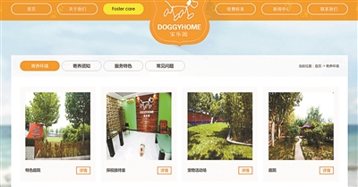 比如在一家在北京郊区的宠物酒店的网页广告中,广告语为“犬寄养全部为单间独院,标配8平方米房间带8平方米小院,每日专人单独遛三次,包括喂食、净化水、消毒和打扫房间”。
