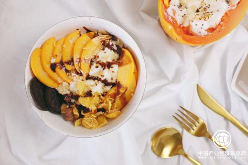 希腊酸奶1碗、黄桃半个、奥利奥2个、