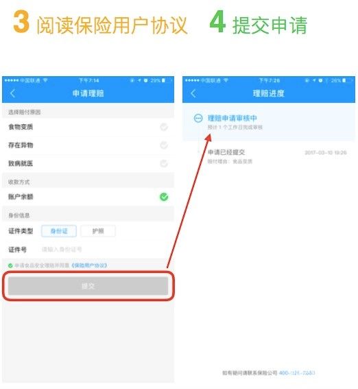 饿了么食品安全险,是传统食品安全责任险的升级版,消费者发生食品安全问题后,可直接在饿了么APP的"订单详情"页一键提交理赔申请。理赔信息将被直接反馈至保险公司,凭借蚂蚁保险的安全大脑和生物识别能力,理赔资料真伪以及商家和用户的关系可以被迅速识别,从而实现快速理赔。视理赔原因,用户最短1小时内即可获得理赔结果。