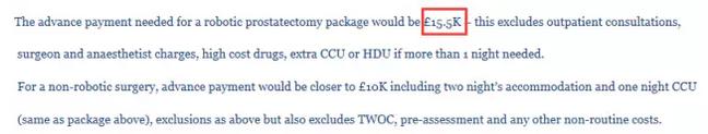 说到前列腺癌,不止是药物,英国的外科手术费用也很亲民。