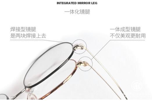 焊接型镜腿是采用焊接技术将两块焊接上去,那么,受技术禁锢,焊接式镜腿不管是从外观上还是从耐用程度上都那么尽如人意,特别是在受外力作用时,焊接式的镜腿更易受到损坏。相对而言,HAN眼镜一体成型的镜腿则在外型上看起来更加流畅美观,抗外力的能力也更强。