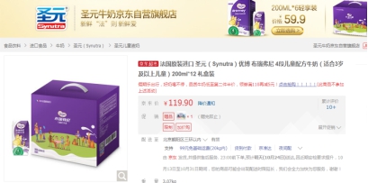 (图为圣元京东自营旗舰店在售的布瑞弗尼4段儿童配方牛奶)