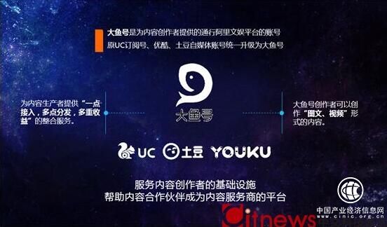据了解,阿里巴巴文化娱乐集团自今年3月统一升级优酷自频道、UC订阅号为“大鱼号”。内容创作者通过大鱼号发布作品,即可实现把内容多渠道发布至优酷、UC、土豆等阿里文娱平台,获得多重收益及曝光。