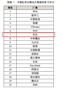 华云位列中国私有云解决方案提供商TOP20中的第七位