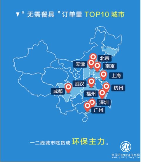 在节省一次性餐具方面,哪些城市最终贡献最大?据饿了么发布的大数据,本次活动中,选择“无需餐具”的订单数最多的十个城市依次为:上海、北京、杭州、深圳、广州、武汉、南京、成都、天津、福州。另外,排名前20的城市还有苏州、青岛、西安、沈阳、哈尔滨、厦门等等,看来,一二线城市吃货成为外卖环保事业的主力,这也将是饿了么推动“蓝色星球”计划下一阶段措施的重点区域。