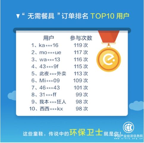 没挤进榜单的伙伴们也不必失落,虽然饿了么发起的“无需餐具”挑战已经圆满完成,但公益组织“绿色倡议”仍然想把这个挑战继续延续下去。如果你还没有参加,赶紧来一单无需餐具的外卖吧!