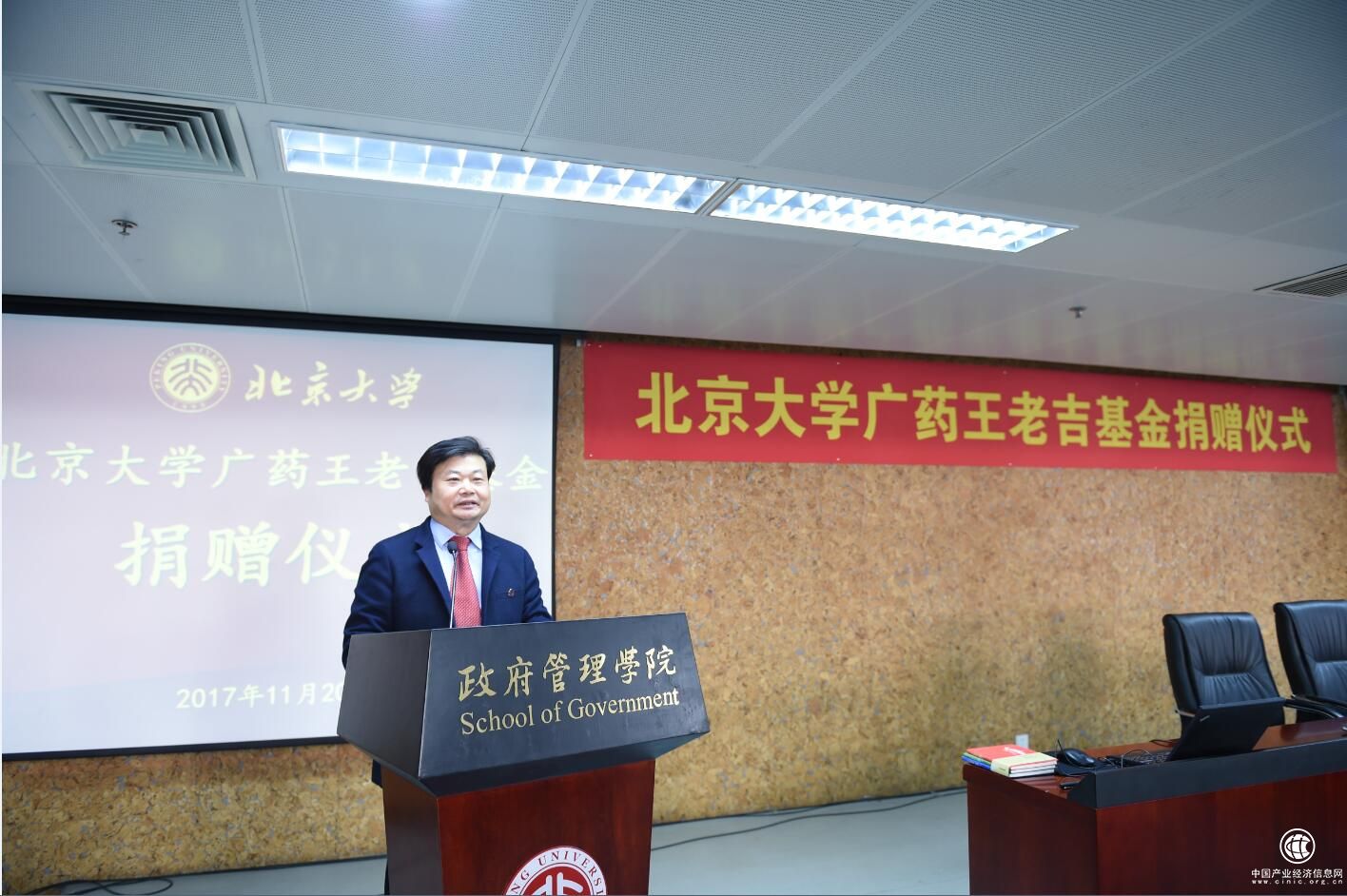 北京大学党委副书记叶静漪、政府管理学院院长俞可平、国内合作部部长雷虹、团委书记陈永利、广药集团董事长李楚源、广州白云山医药集团总经理黎洪、广药集团工会主席李锦云、广州王老吉药业总裁方广宏、广州王老吉大健康董事长徐文流等领导,以及北京大学师生代表共同出席、见证了捐赠仪式。北京大学教育基金会副秘书长耿姝主持仪式。