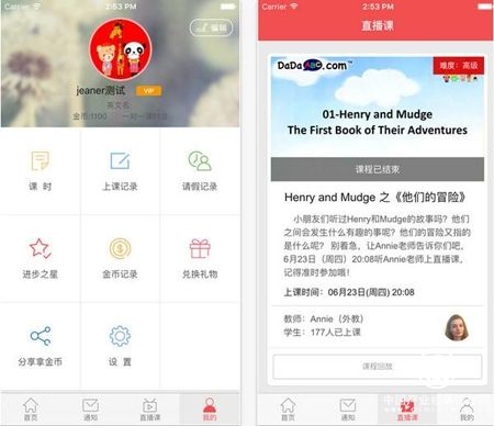 早在以PC端为主的阶段,哒哒英语就实现了“100%透明教室”系统的运用,该系统旨在让家长通过移动设备实时观看孩子的在线课堂状况,从而对孩子及老师的表现有直观体验。作为主打功能,该系统也一直在APP上得以保持。