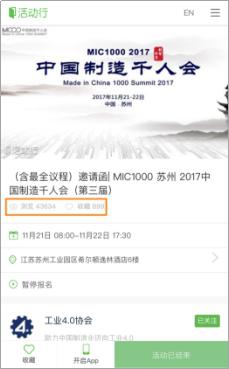经过统计,共有13位政府领导、34位演讲嘉宾、和来自1,152家企业的2,500人次出席本届MIC1000中国制造千人会,其中参会人员63%为企业高管,总经理级别以上为21%。活动行报名通道阅读次数越四万三千多次,而大会现场直播超五千多位观众。