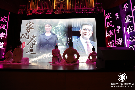 晚会舞台背景出现“丁兰十大孝星”之一:绿康医养集团董事长卓永岳的形象(右)
