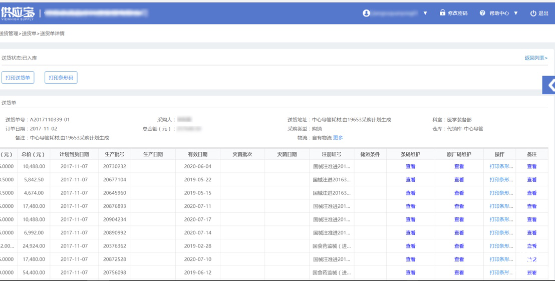 5. 对高值耗材的管理进行了唯一码管理,实现了采、供、配、用全流程可追溯。