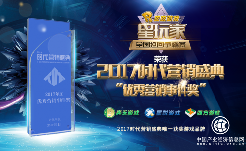 凭借此次在传播、受众参与度、品牌影响力的出色表现,四方游戏星玩家全国巡回争霸赛获得2017时代营销盛典“优秀营销事件奖”,成为唯一入选该奖项的游戏企业,同时入选的有光大银行“深港澳击剑公开赛”、上海通用汽车“2017年凯迪拉克营销案例”等行业优秀营销案列。