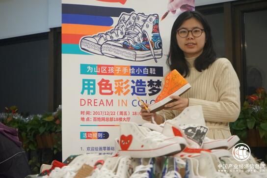 为了把更多的“色彩”带进山区,在圣诞节前,百姓网的员工们聚在一起手绘小白鞋,送给三江苗族乡培秀小学的孩子们,作为他们的新年礼物。