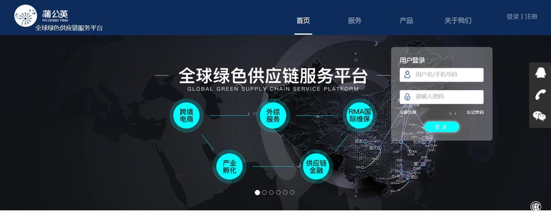 ①架构绿色供应链服务门户-蒲公英平台,开启上游供应商、下游客户、生态圈伙伴、内部用户、服务产品的产业互联网服务和体验的新“入口”,统一用户体系,聚合流量,打通产业链上下游关系,而吸引用户进入之后,通过将线下服务内容打造成有竞争力的产品,以全生命周期供应链服务,来交付更多价值、增加用户粘性,从而完善用户体验,向营销平台化、服务平台化、营销产品化、服务产品化转型。