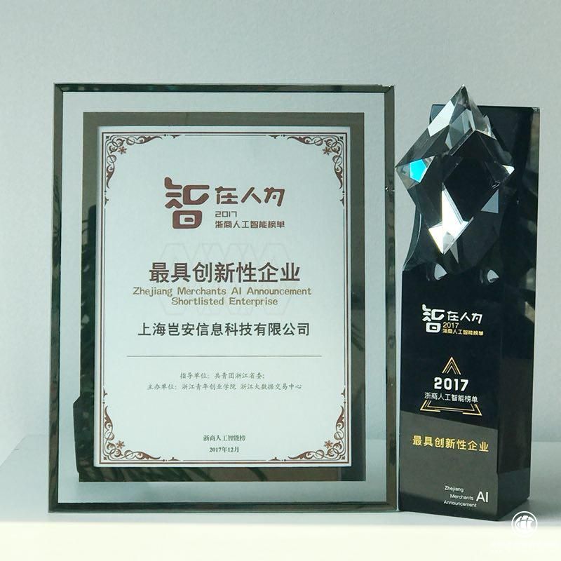 导语:12月21日下午,2017人工智能产业融合创新峰会在杭州国际博览中心举行。在此次峰会上,“2017年度浙商人工智能榜单”正式公布,岂安科技获“最具创新性企业”奖项。