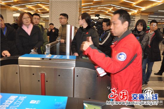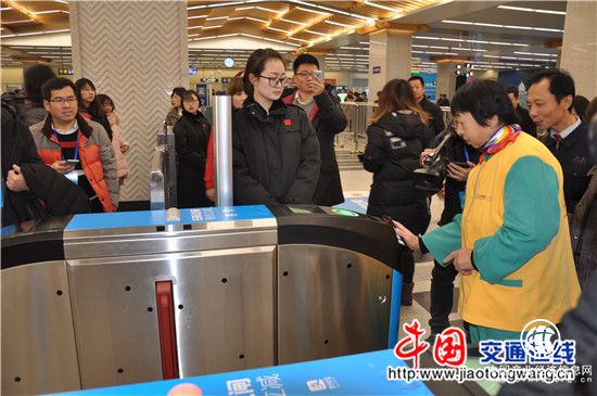 本网讯2018年1月1日上午,由西安地铁、蚂蚁金服、小码联城三方合作共同推出西安地铁全线开通“手机扫码过闸”乘车发布会在西安地铁大雁塔站举行。陕西省省委常委、西安市委书记王永康,市长上官吉庆,蚂蚁金服集团总裁井贤栋等领导出席发布会并体验手机扫码过闸活动。