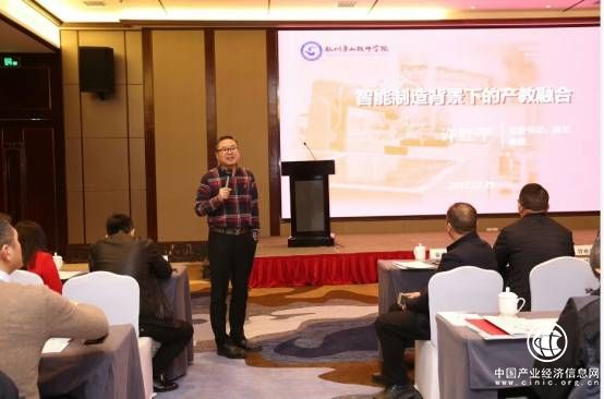 学会工作会议结束后,学会理事长、杭州萧山技师学院院长许红平教授作“智能制造背景下的产教融合”主题演讲。许红平教授从智能制造的产业特征、智能制造产业背景下所需的人才、智能制造产业与人才培养的现状和智能制造背景下的产教融合四大方面分享了自己的理念与观点。他认为,广义而论,智能制造是一个宽泛的概念,无论是智能还是制造,是先进制造技术与新一代信息技术的深度融合,贯穿于产品、制造、服务全生命周期的各个环节。新一代智能制造将使人与机器的工作重新分配,人的体力劳动和脑力劳动将得到根本性的解放。新一代智能制造中智能产品是主体,智能生产是主线。智能产品需要更多的创新创意设计类人才和人工智能技术人才,智能生产则需要高端智能制造装备的支撑,需要更多人成为理实一体化、人机交互化、知识综合化、技术复合化、国际视野化、创新即时化的新工程、新技术、新技能人才。然而我国智能制造产业的人才结构远未达到合理的水平,要解决人才培养的瓶颈关键在于产教的融合。产教融合要解决认识、标准、师资、政策和浮躁的问题,学习医科大学育人模式,先校企“谈恋爱“,后企生“谈恋爱”,大刀阔斧的改革人才培养的目标、结构和模式,最终建立共同开发专业课程体系、共同组建校企师资队伍、共同制订人才培养标准、共同共享双方基地平台、共同实施工学一体管理、共同研发新技术新产品、共同参与人才考核评价、共同开展国际资格认证的校企同生体。