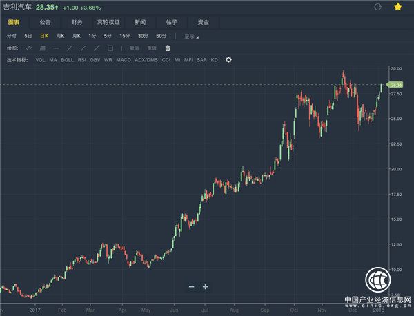 2016年吉利汽车业绩爆发性增长,收入同比增长78%,基本每股收益增长126%,强劲的业绩也驱动了股价的上升。