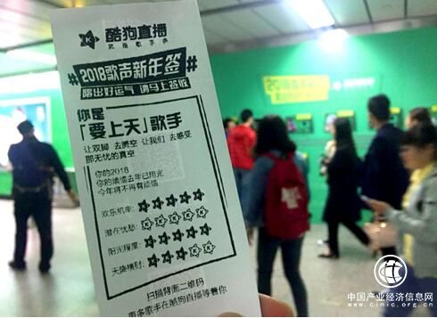你站在屏幕前拿着麦克风对准屏幕唱一首歌,屏幕将测算出你是哪种“歌手”,灯带会引导你走向特定的「歌手新年签」喇叭,并播放该类型歌手的对应歌曲,系统还会打印出纸质版新年签,上面附有对应歌词、2018全年趣味运势等,很多网友把这些有趣的内容也分享到了微博上。