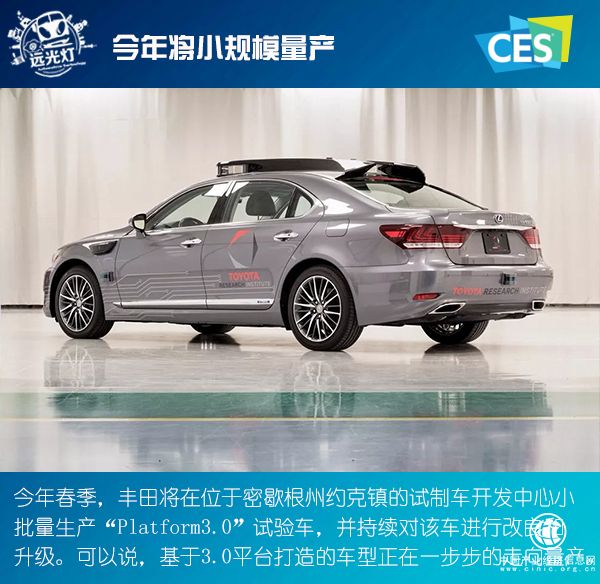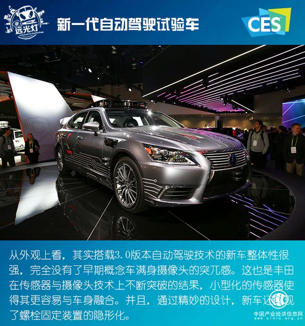 在本届CES上,丰田汽车展示了基于“Platform3.0”打造的新一代自动驾驶试验车。该自动驾驶试验车以老款Lexus LS 600hL为原型,通过对自动驾驶技术的革新,第三代自动驾驶试验车所搭载的传感器集成度更高,车辆的整体性进一步增强,这也使得新车设计愈发接近量产车型。
