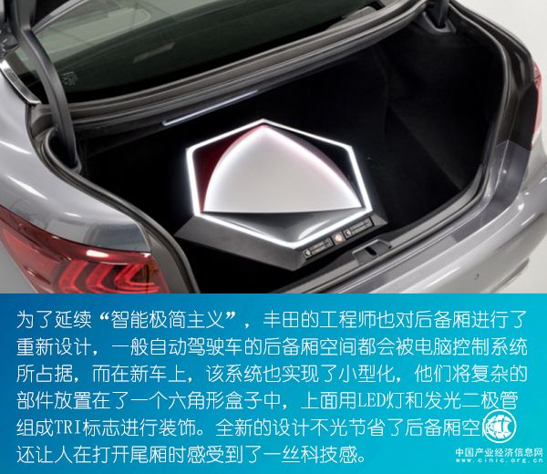 之前车型上最不协调的就是车顶雷达的设计,不过在新车上我们发现车顶造型有了明显的变化。而用丰田自己的话来说,这是运用“智能极简主义”的结果。