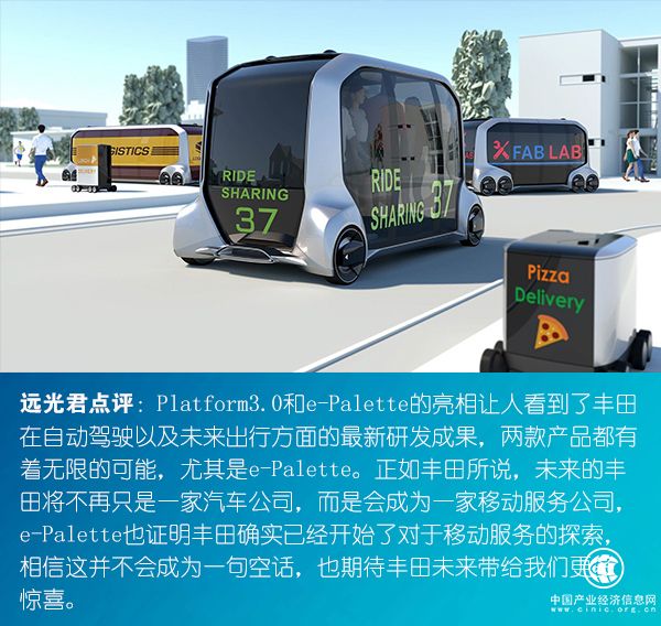 除了“Platform3.0”自动驾驶车,丰田还带来了全新出行平台e-Palette。丰田公司社长丰田章男也表示,未来的丰田将不再只是一家汽车公司,而是会成为一家移动服务公司,公司将会同谷歌、Facebook等科技巨头竞争。