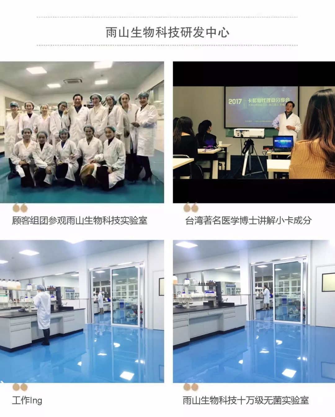 雨山女士说,雨山生物科技研发中心要走在尖端科技的前沿,我们要不断去提醒和推崇健康美颜养生的文化理念,让身边更多人关注健康从而受益。