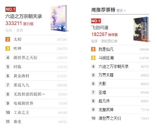《六迹之万宗朝天录》位居起点签约作家榜榜首和起点周推荐票榜第四名