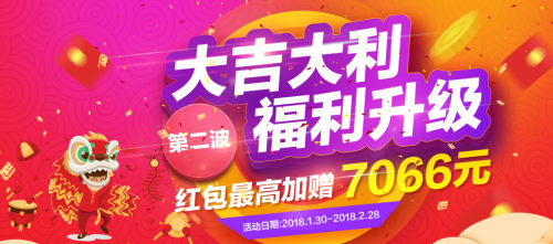 紧接着官网又推出第二波“大吉大利福利升级”的主题活动,本次活动自2018年1月30日开始,持续至2月28日,是钱多多新年红包活动的升级版,本活动和上一活动现金红包奖励可以同享,投资人可以享受到比平时高出很多的收益。