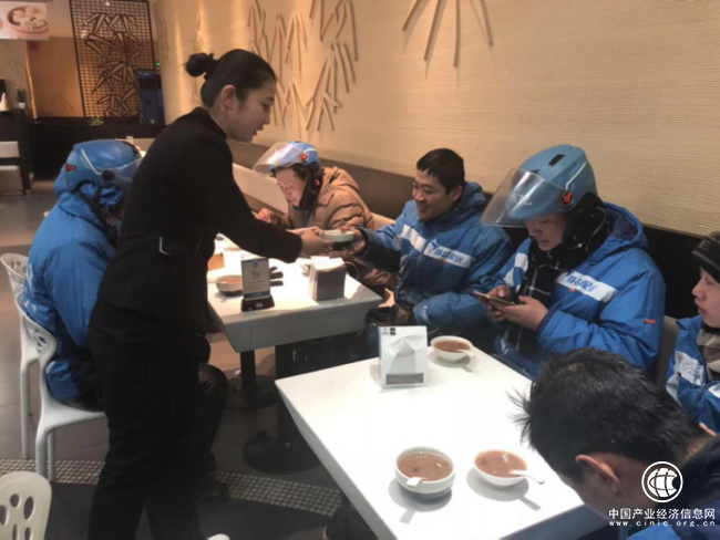 1月24日,眉州小吃准备了多份腊八粥,并邀请500名饿了么骑手,进店喝腊八粥。平时一直服务顾客的饿了么小哥,作为顾客体验被服务的感觉,喝到温暖美味的腊八粥后,顿觉心里暖烘烘的。