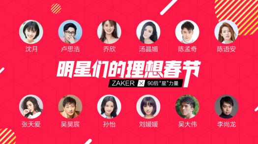 对于明星来说,什么样的春节是理想中的呢?ZAKER携手沈月、张天爱、乔欣、孙怡、陈语安等12位娱乐、文艺界的90后明星和KOL,围绕“理想春节”这一主题,讲述自己对“理想春节”的看法,并给网友送出新春祝福。
