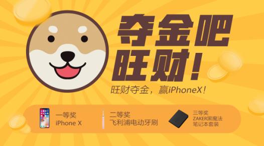 祝福有了,福利自然也少不了。2月15日-2月23日,用户在ZAKER客户端内,藏了许多“旺财”狗,点击“旺财”狗,将获得“ZAKER币”作为奖励,此外,更有iPhoneX、飞利浦电动牙刷和ZAKER黑魔法笔记本作为新年奖品!