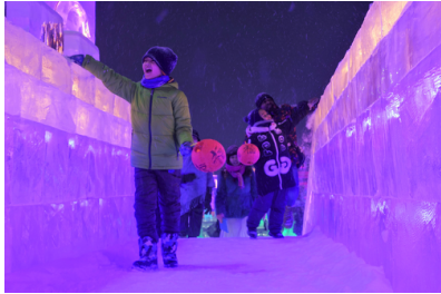 哈尔滨师范大学的师生来到七彩冰雕大世界,跟随着冰灯工艺传承人学习冰灯制作,一件件晶莹剔透的冰灯雕塑闪烁着美的光芒。