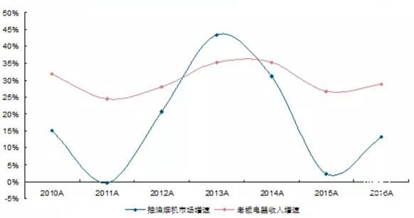 (老板收入增速与抽油烟机行业增速对比,体现穿越周期属性——长江证券研究所)