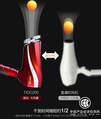 平常洗完发,女王也有同样吹发的烦恼吧。吹风机拿得手酸,心想还是让头发自然风干吧,可是这对头发造成的伤害你知道吗?因为在头发湿润的状态下,毛鳞片是打开的,此时头发比较容易受损。如果在头发未干透的情况下睡觉的话,未干透的头发和枕头摩擦,可能造成毛鳞片的脱落和损伤。可是,拥有这台TIDC200正负离子吹风机就完全不用担心这个烦恼了,1.9m?/大风量让干发时间缩短约二分之一。超快速吹干秀发,不再为吹头发感到疲累,美本来就如此简单。