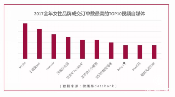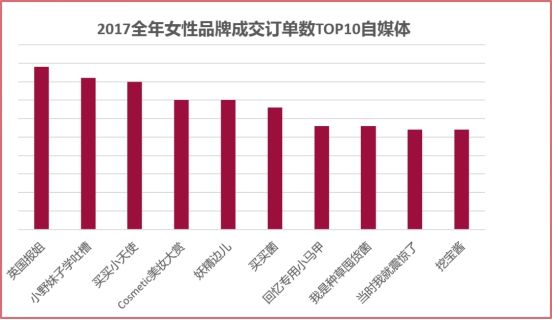 与此同时,微播易也分析了2017年全年女性品牌投放社媒成交订单数最多的10个自媒体,如下图: