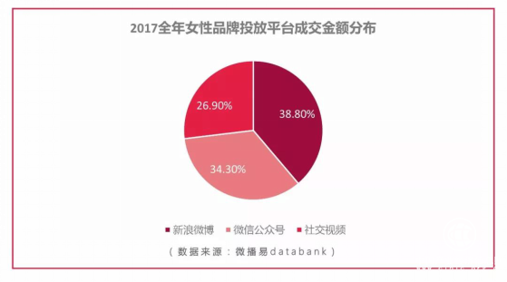 数据显示,2017年全年,女性品牌最爱投放的平台是微博,占比达到38.8%。分析认为,原因有三: