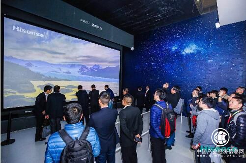 海信首次展出了300吋激光影院商用方案,使激光影院的使用场景从家庭延伸到商用领域,这台300吋激光影院,6.6米宽,3.7米高,面积比一个正规足球球门还大出不少。拥有超大屏幕的同时,超高清分辨率可达8K,显示像素数量达到3200万,是4K分辨率的4倍,更是2K分辨率的16倍!