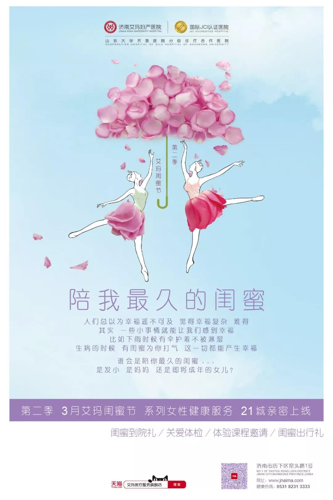 3月,是温暖的季节,是甜蜜的季节,在这个全球都会关爱女性的月份里,你有没有准备好接受四海八荒的无限宠爱呢?为了答谢泉城妇婴群体对医院的厚爱和支持,济南艾玛妇产医院第二季“艾玛闺蜜节”系列女性健康服务亲密上线,让亲爱的泉城小仙女们都能享受到来自艾玛的四重健康好礼。