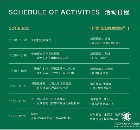 其中“零售新思路”论坛在3月24日举办,“外卖市场的生意经”论坛在3月25日举办。6位外卖领域的大咖、专家将从外卖市场的生态、线上线下的配合、传统餐饮业的外卖拓型、新品牌的孵化、营销和包装等多维角度入手,来分析外卖市场的新变化、新趋势、新玩法。