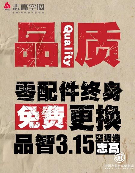 可以预见,随着志高空调在315期间的强势布局,扛起品质消费大旗,用真品质,好服务接受社会各界的严苛考验。正在带领空调行业不断破除带魔咒的315,引领中国空调业向着品质消费的高地不断迈进,这将为空调行业品质消费的持续发展、做大做强注入新的动力!