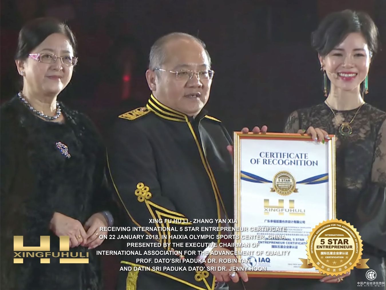 屡在国际上创品牌口碑的广东幸福狐狸内衣设计有限公司,2018年伊始,在国际上再创佳绩,通过国际品质促进会(简称IAQ)的审核,在产品质量与企业领导上都获得了高度认可,荣获四大顶级荣誉,包括了:国际五星品牌认证、国际五星企业家认证、国际五星健康品牌认证、国际五星团队认证,并且于2018年1月22日在福州海峽奧體中心綜合體育館所主办的《幸福春晚.有福之州暨表彰盛典》上,由国际品质促进会执行主席拿督斯里巴杜卡陈宥财客座教授亲自颁发认证奖状,确认幸福品牌之国际化,有效提高企业的经济效益和社会效益。