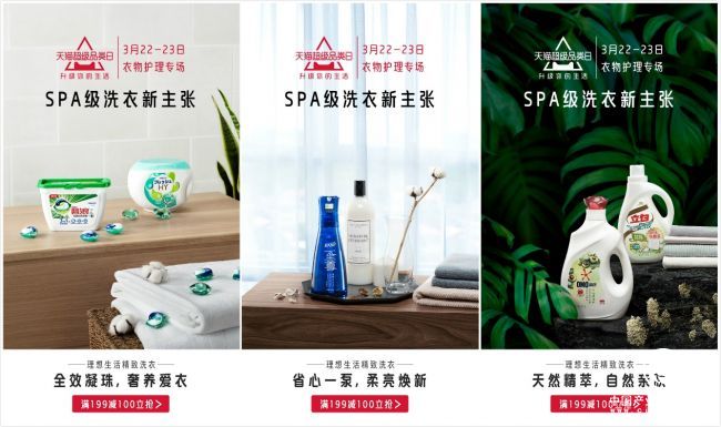 3月22日世界水日“水美中国”论坛期间,天猫超级品类日携手中国洗衣护衣行业五大舰长品牌蓝月亮、碧浪、卫新、奥妙、立白, 以“SPA级洗衣新主张”为主题,倡导理想生活,精致洗衣,共同开启为期2天的衣物洗护品类专场活动,为消费者精选出洗衣、护衣品类中高端的最优商品,并首次发布衣物洗护品类消费升级新趋势。