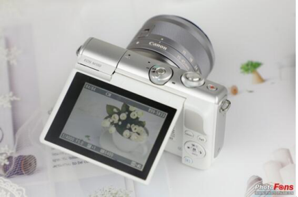 全新机型佳能微单EOS M100复古的外观以及小巧玲珑的机身,都透露着一股小清新。相比定位专业用户备机的EOS M5,以及高端进阶无反的EOS M6,EOS M100更像是为女生专门定制的随拍伴侣,虽然设计简约,但配备的功能可不少。顶部模式拨盘简洁了不少,具体的模式切换则被放置到触摸操作之中,类似智能手机的触摸操作使用起来倒也不难上手,减小机身体积的同时并没有缩水,可谓是兼顾了颜值与功能,相机快门按钮外侧的形状设计也恰到好处,握相机时食指能够很自然地搭在快门按钮上。