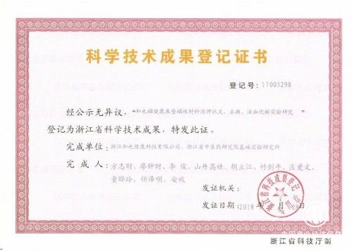 此次获得登记的三项研究分别是“大鼠生活于和也磁床垫磁板的磁环境中安全性的实验研究”、“和也磁床垫磁板生物安全性(体外细胞毒性、刺激与迟发型超敏反应)试验”、“和也磁健康床垫磁性材料消肿抗炎、止痛、活血化瘀实验研究”。这些研究分别是和也公司与浙江省中医药研究院基础实验研究所、浙江省实验动物与安全性研究重点实验室共同合作的成果。