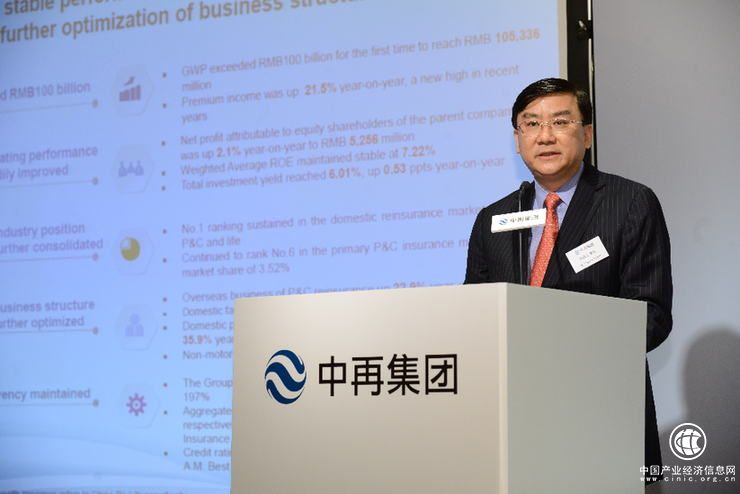 2017年,中再集团坚持以“一三五”战略为指引,加快创新、协同、裂变,在国家战略和服务实体经济中挖掘新机遇、优化管控机制、有效防控风险,业务结构持续优化、发展速度和质量不断向好:一是保费规模突破千亿,达1053.36亿元人民币,整体实现21.5%的保费增速,创近年来新高。二是经营效益稳步提升,归属于母公司股东的净利润达52.56亿元人民币;加权平均净资产收益率7.22%,保持稳定;总投资收益率为6.01%,同比提升0.53个百分点。三是行业地位持续稳固,财产再保险、人身再保险业务境内市场份额稳居行业第一位;财产险直保业务稳居行业前六位,市场份额为3.52%。四是业务结构持续优化,财产再保险境外业务同比增长22.9%;财产再保险境内临分业务同比增长50.8%;人身再保险境内保障型业务同比增长35.9%;财产险直保非车险业务同比增长44.7%。五是偿付能力保持充足,集团合并综合偿付能力充足率197%;中再产险、中再寿险、中国大地保险综合偿付能力充足率分别为218%、234%和267%;2017年获得贝氏评级“A(优秀)”,标准普尔评级“A”。