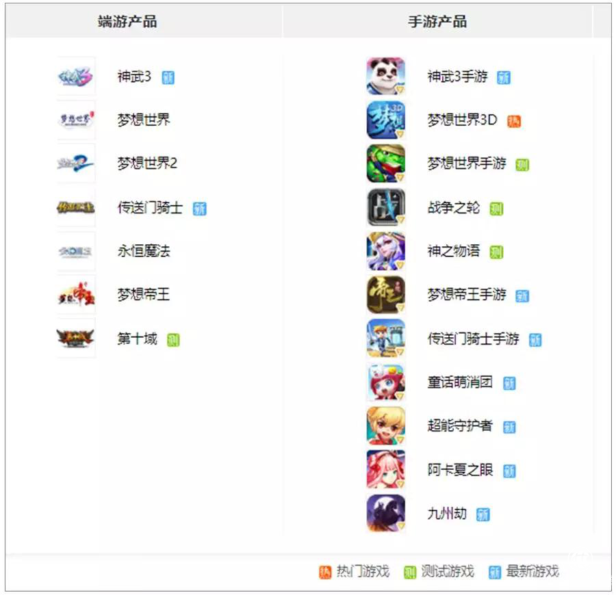 ▲多益网络在官网列出的产品矩阵中,有大量新品游戏和测试游戏