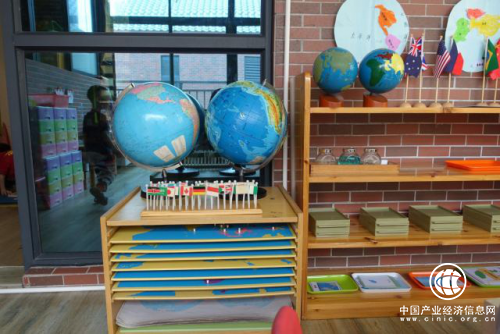整齐的排列着教具柜,精心陈设着各种各样的教具,孩子们自由地选择各种不同的“工作”,自主的学习,自由的说话,且丝毫没有常见公共场合的嘈杂感,整个教室氛围非常平和、温馨,还有一种不可名状的感动。